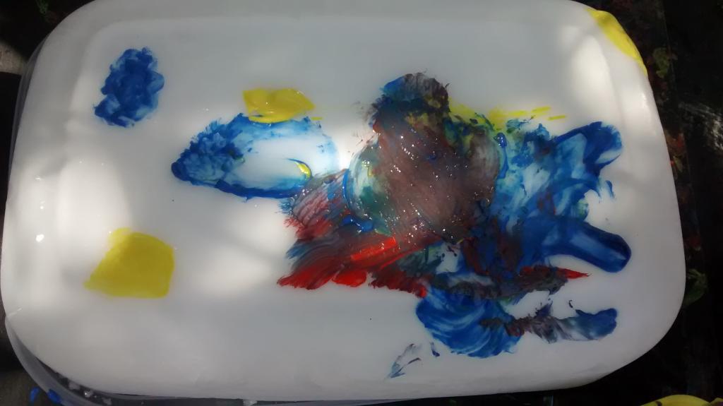 Lo bueno es que podemos tener varios recipientes congelados e ir sacándolos distintos dias conforme quieran pintar si les gusta la actividad.