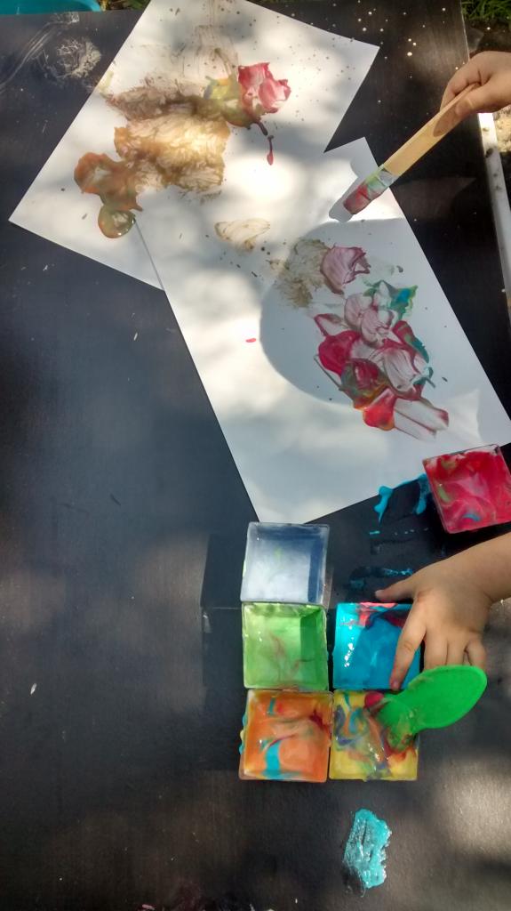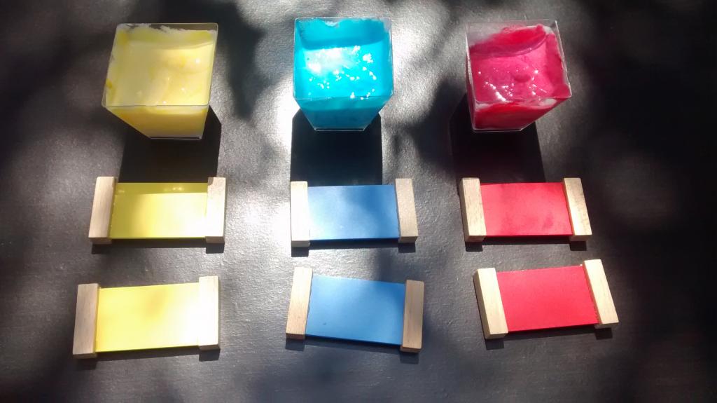 ¡Ah! antes de pintar jugamos a identificar la Caja de color nº 1 de Montessori con algunos colores de las pinturas que habíamos hecho… y ¡lo conseguimos!