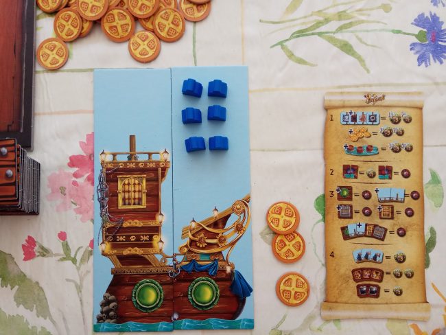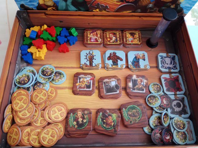Comenzando a jugar nos situamos ante 6 fases a completar hasta que se terminen las losetas del barco y las fichas para equiparlo. Estas seis fases son: rellenar el cofre del tesoro, saquearlo, pagar a los marineros desempleados, repartir el botín, subastar las partes del barco que sobran y montar y colocar las losetas en tu barco.