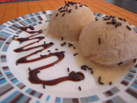 Introducimos la mezcla resultante en la heladera y la dejamos tanto rato como indiquen las instrucciones de funcionamiento de la heladera.