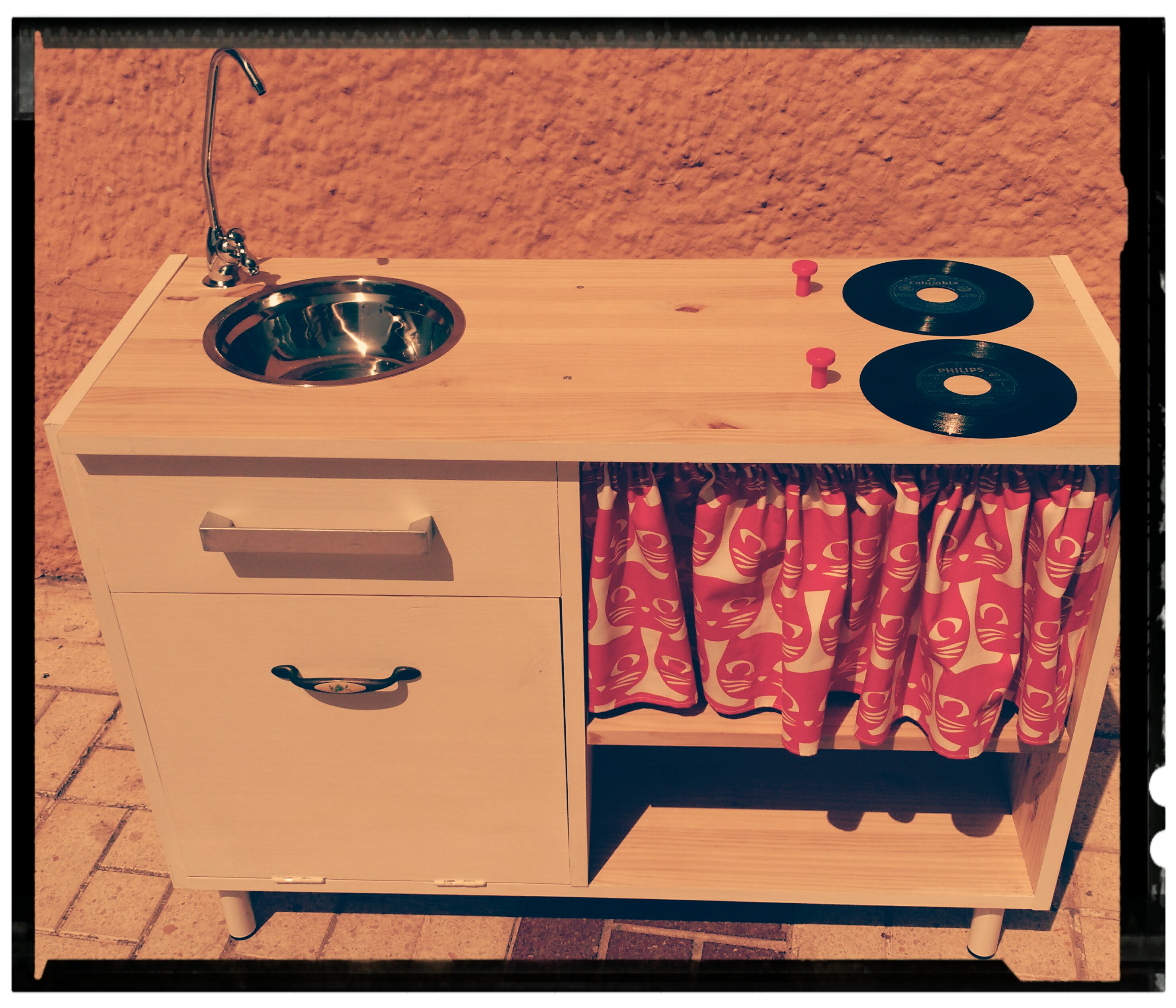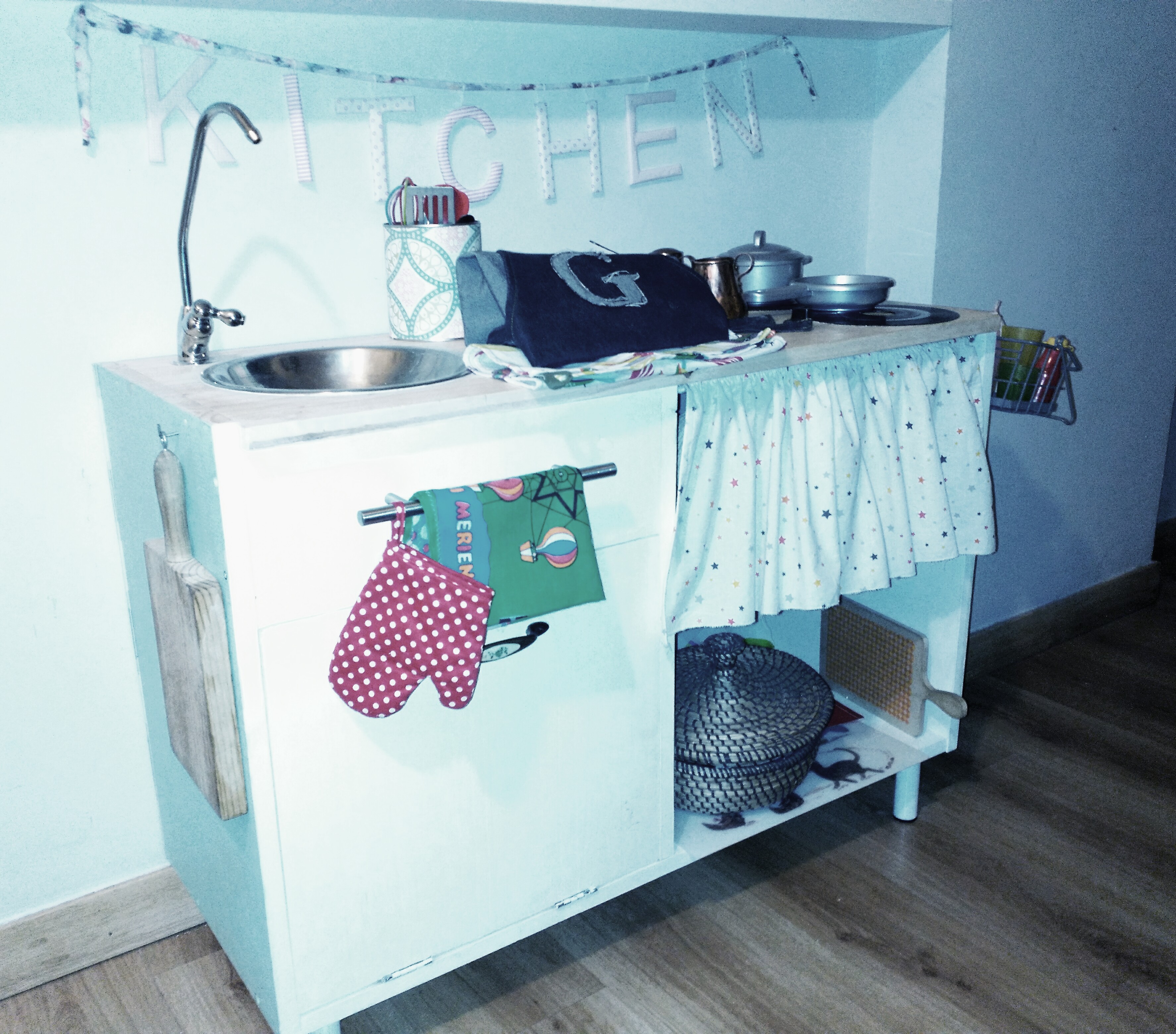 La altura, me gusta utilizar patas que sean regulables, para que luego no se queden muy bajitos esos juguetes, que sean funcionales, lo más parecido a la realidad, si en una cocinita no hay un grifo, pues no estamos siendo fieles, en las mías ponemos uno real, que es pequeñito.