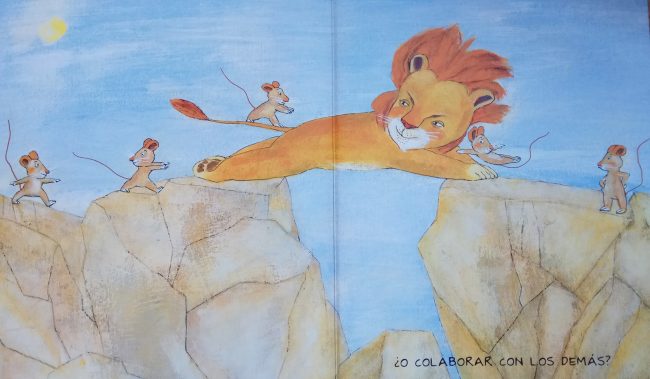El formato del libro me parece realmente adecuado, con páginas que se despliegan ocultando o descubriendo parte de los mensajes y personajes. Un gusanito muy gracioso irá guiándonos a través de las páginas que nos conducirán a replantearnos temas y valores como la superioridad, la ayuda a los demás, la sobreprotección, el atrevimiento, el miedo, la curiosidad, el daño a los demás, la caridad, la resiliencia, el egoismo, el altruismo, las apariencias, la envidia, la alegría, el esfuerzo, el trabajo, el buen uso de los recursos y el amor.