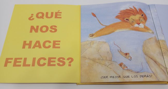 ¿Qué nos hace felices? Es un álbum ilustrado que permite a los niños y a los padres entablar una conversación sobre lo que es realmente importante, los valores que nos gustaría tener y cómo podemos no sólo ser felices nosotros, sino también ayudar a que los demás lo sean.