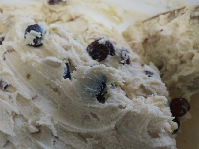 Amasamos bien y finalmente añadimos los arándanos y los piñones mezclando bien toda la masa para que queden integrados.