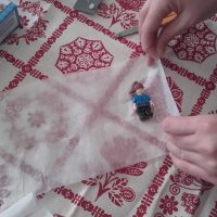 Antes de ponerme manos a la obra preparé las sorpresas que iba a colocar dentro, la pareja de pendientes rosita y dos megabloks: