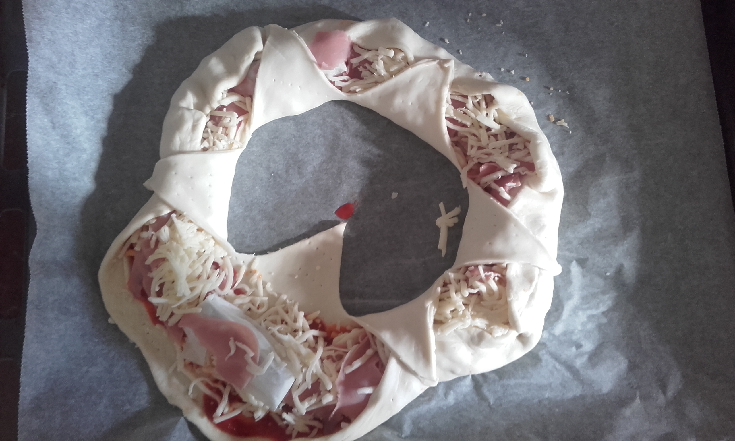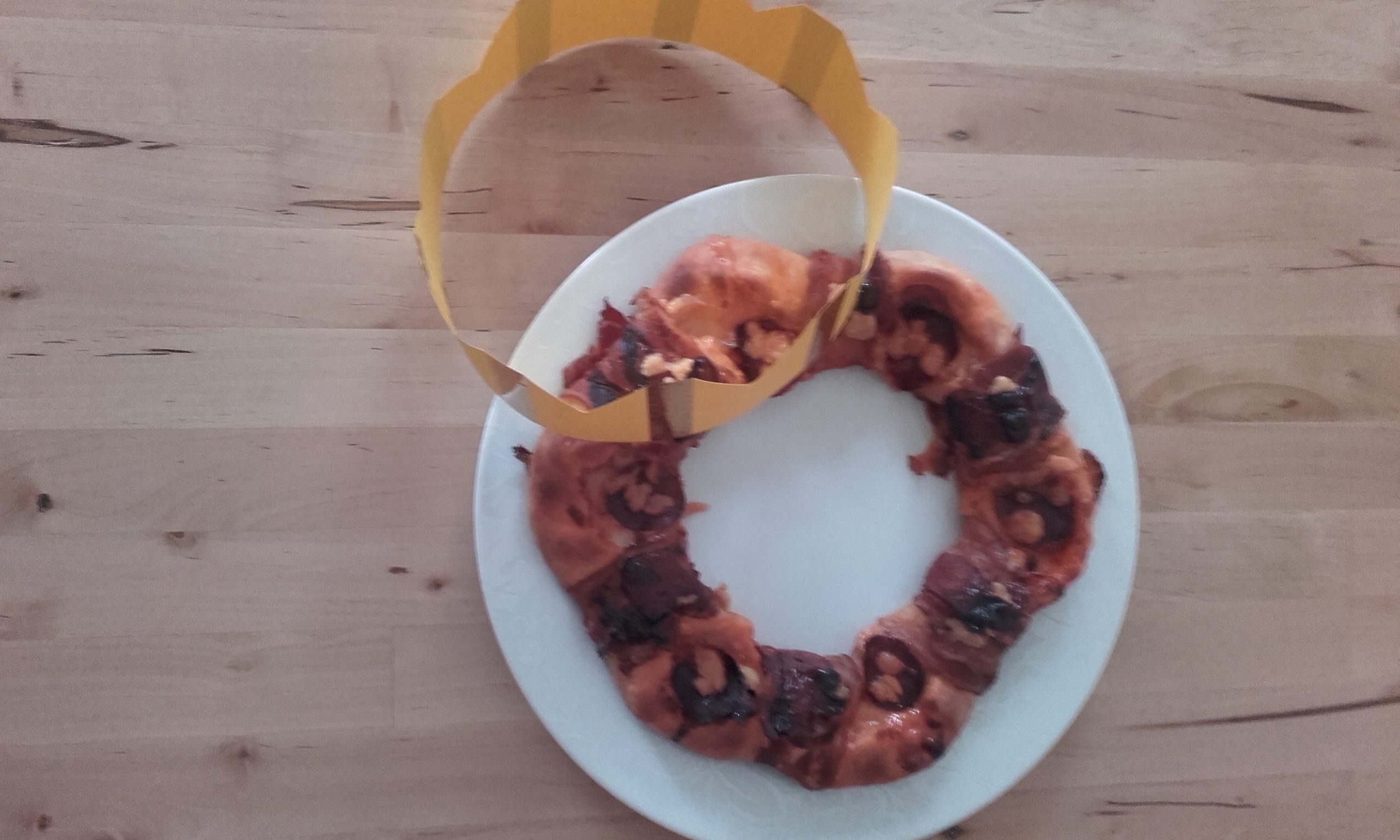 Yo, entre aquel recuerdo de los roscones maravillosos de mis iaios y que a nuestro gran niño no le gusta el dulce, se me ocurrió, a raíz de ver un vídeo en Instagram, hacer un Roscón de Reyes salado con sorpresitas geniales como las que nos encontrábamos en aquellos roscones…