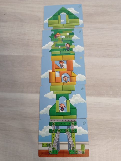 El objetivo del juego es construir varias torres de cinco alturas teniendo en cuanta diferentes variables: los materiales con los que está construida, el color, el número de constructores… a simple vista parece un juego muy sencillo, pero llega a complicarse con tanta variable. No puede haber tres cartas consecutivas con las mismas características.