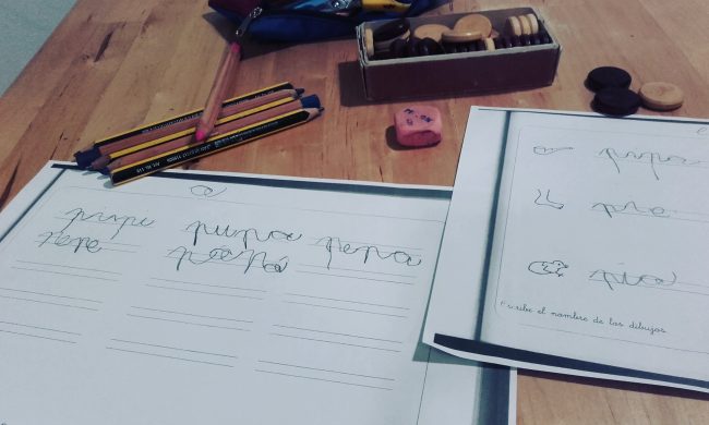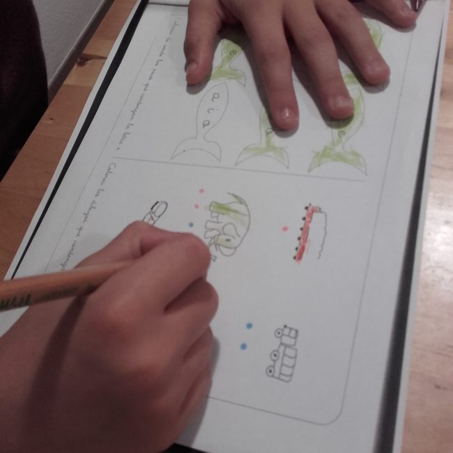 Después de valorarlo mucho y viendo su realidad escolar y las necesidades que tiene para poder continuar el ritmo del cole vimos la necesidad de empezar este año en casa a trabajar la escritura. En casa no la habíamos tocado porque creo que todo tiene un orden y no podemos enseñar ciertas cosas si no sabemos otras. Pero ha llegado un punto en su vida escolar en el que está aprendiendo a escribir pero no tiene conciencia fonológica de los sonidos y además no generaliza lo que aprende, por lo tanto, no puede escribir sílabas o palabras.