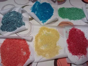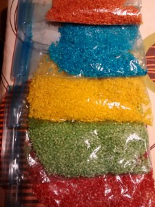 Es muy fácil prepararlo, yo he preparado 1kg de arroz aunque creo que a la próxima prepararé un kg o medio kg por color y lo guardaré para ir sacándolo poco a poco. Materiales: