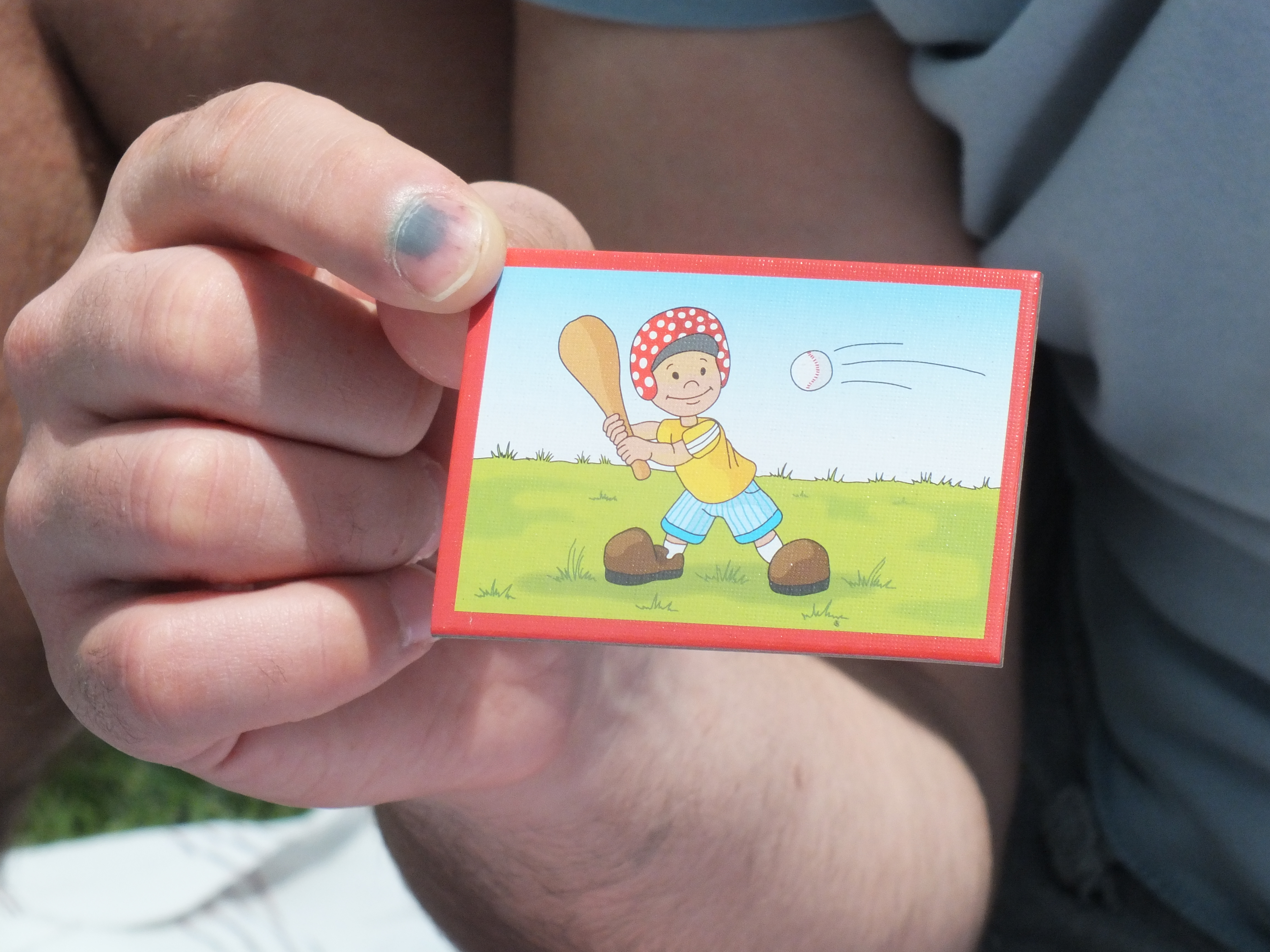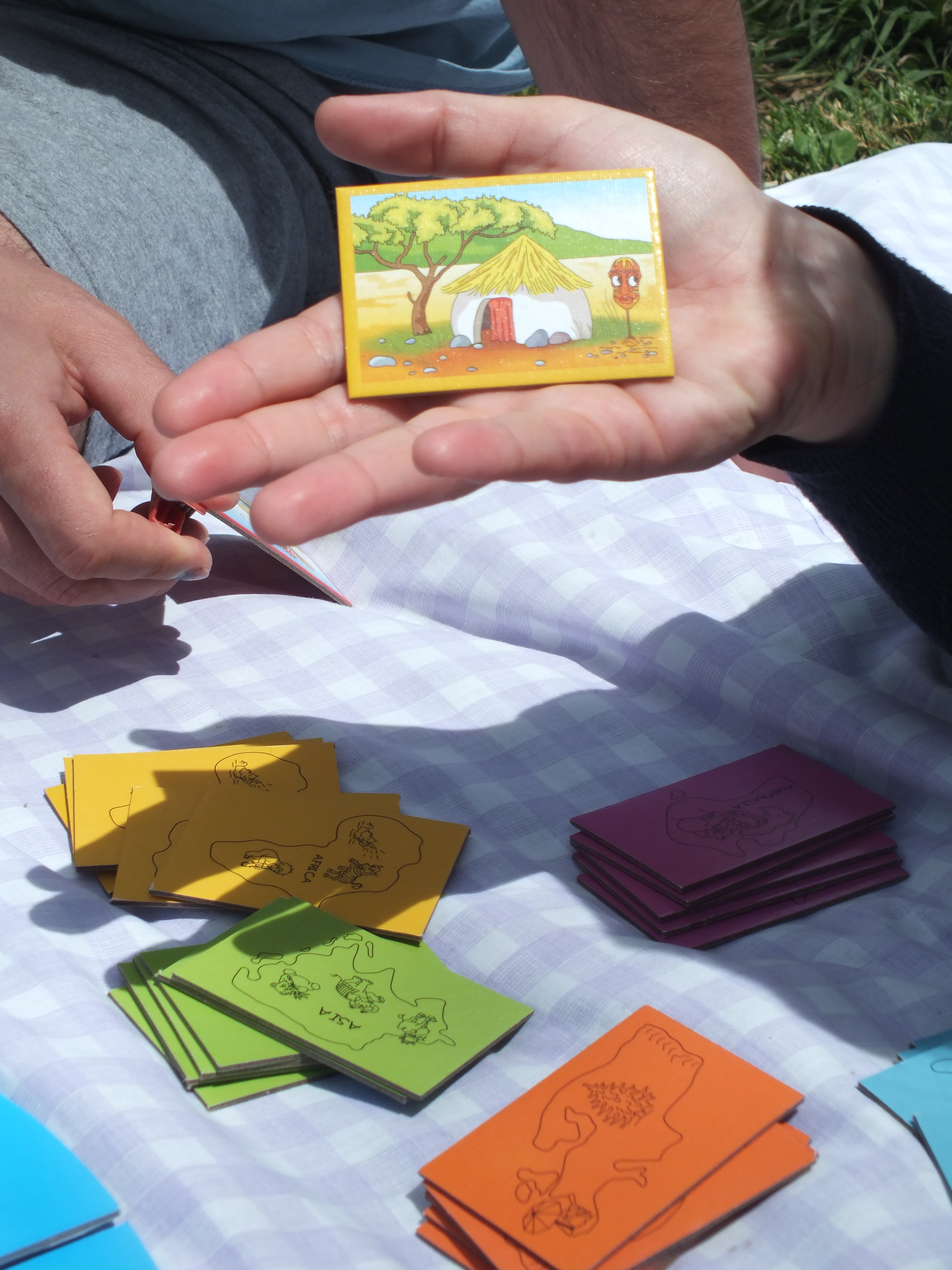 La casilla de acción de animal creo que es de las que más nos ha gustado y con la que más nos hemos reído porque hay que describir o imitar a un animal (león, elefante, canguro, gato, loro o grizzly), y nos lo hemos pasado fenomenal dando saltos como canguros, rugiendo como un león y sacudiendo nuestro pelo…