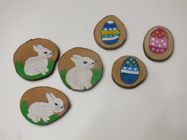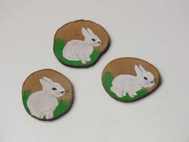 Pinté en tres de ellos un conejo blanco de Pascua, y en los otros tres un huevo de Pascua (debo de decir que creo que se me da mejor pintar conejos de Pascua que huevos de Pascua).