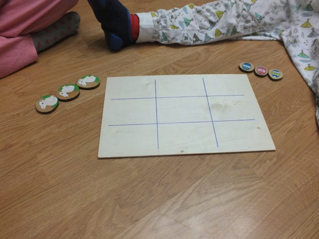 Hasta ahora me había parecido un poco pronto introducir a los niños en el mundo de los juegos de mesa. Antes de nacer los niños jugábamos todas las semanas, horas y horas, tenemos una colección importante de juegos de mesa porque nos gustan mucho, pero desde que nacieron los peques dejamos de hacerlo por falta de tiempo sobretodo. Ahora que son más mayores creemos que ya pueden jugar a algunos juegos de mesa tradicionales y sencillos como el que os enseño hoy, el tres en raya.