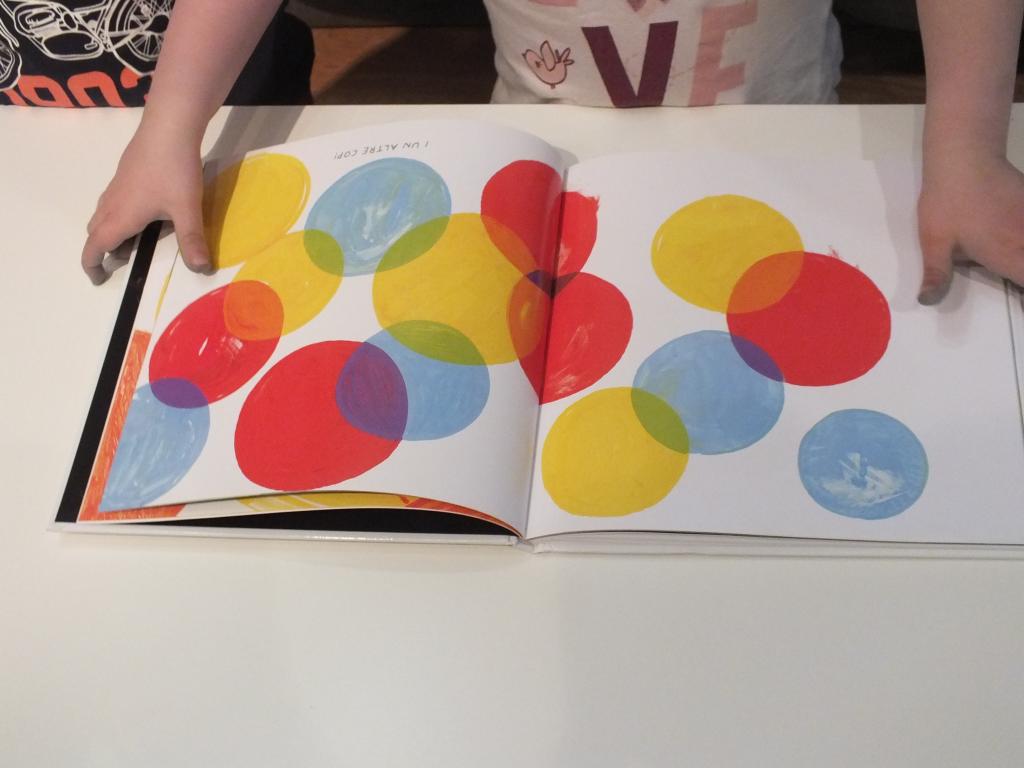 Es un libro muy sencillo, en el que las páginas van cobrando vida con la fusión de los colores primarios, además es un libro fantástico para los más peques porque tiene muy poco texto.