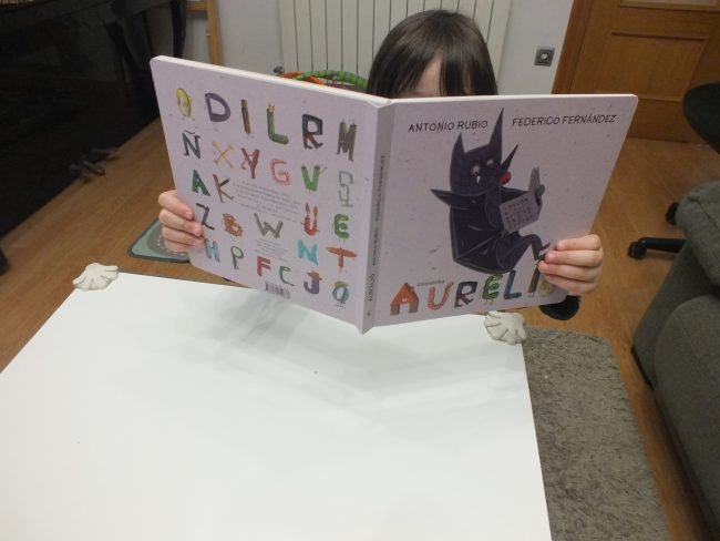 Va haciendo rimas y jugando con las vocales desde que comienza hasta que finaliza el cuento y forma su propio nombre. Tanto el animal que protagoniza el cuento (un murciélago), como su nombre (Aurelio) son dos palabras que contienen todas las vocales, así, Aurelio va rimando palabras y pequeños versos de manera que va incluyendo varias vocales de cada tipo en cada página.