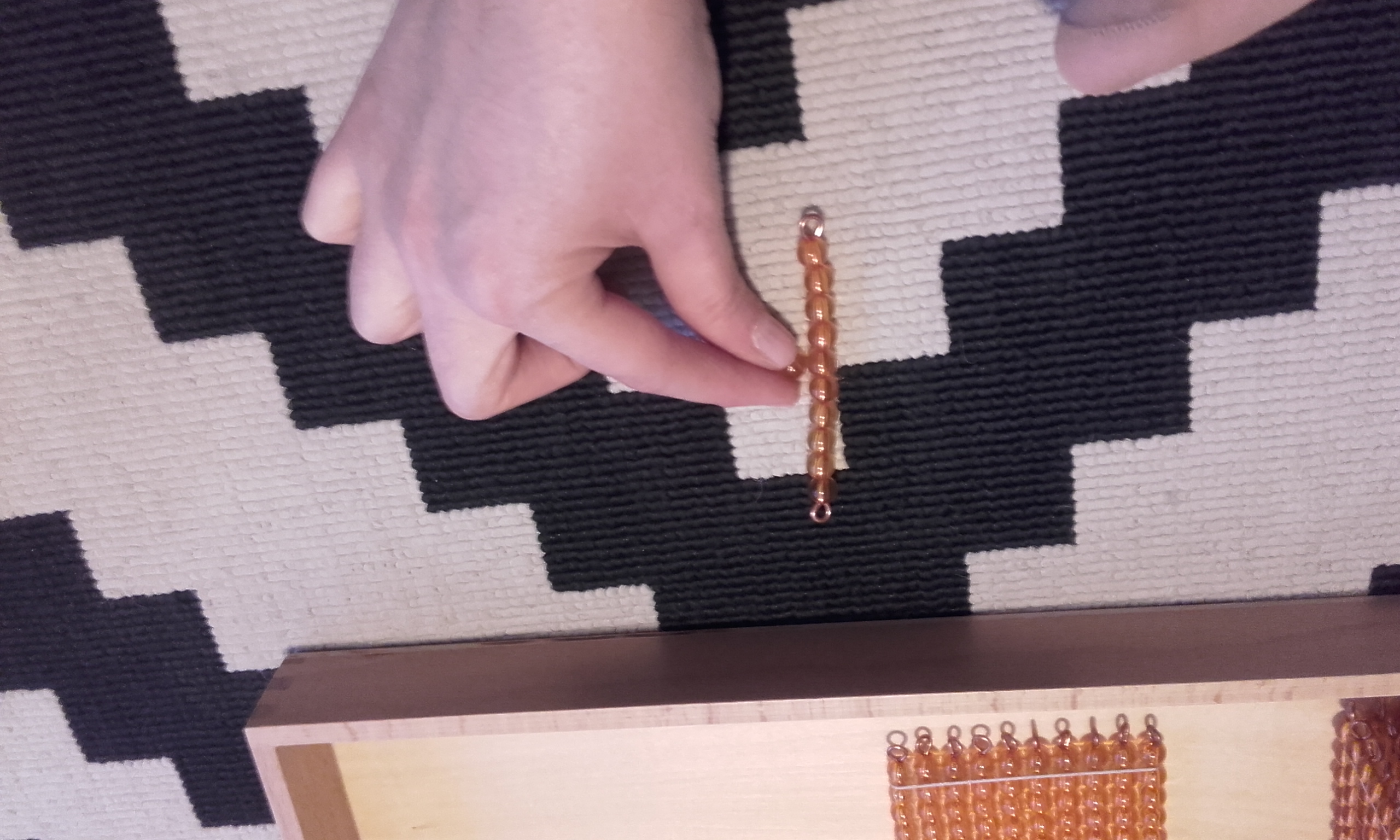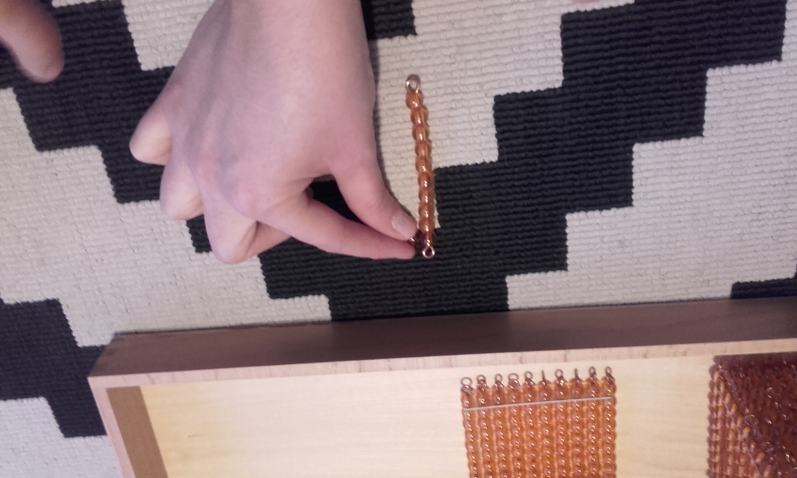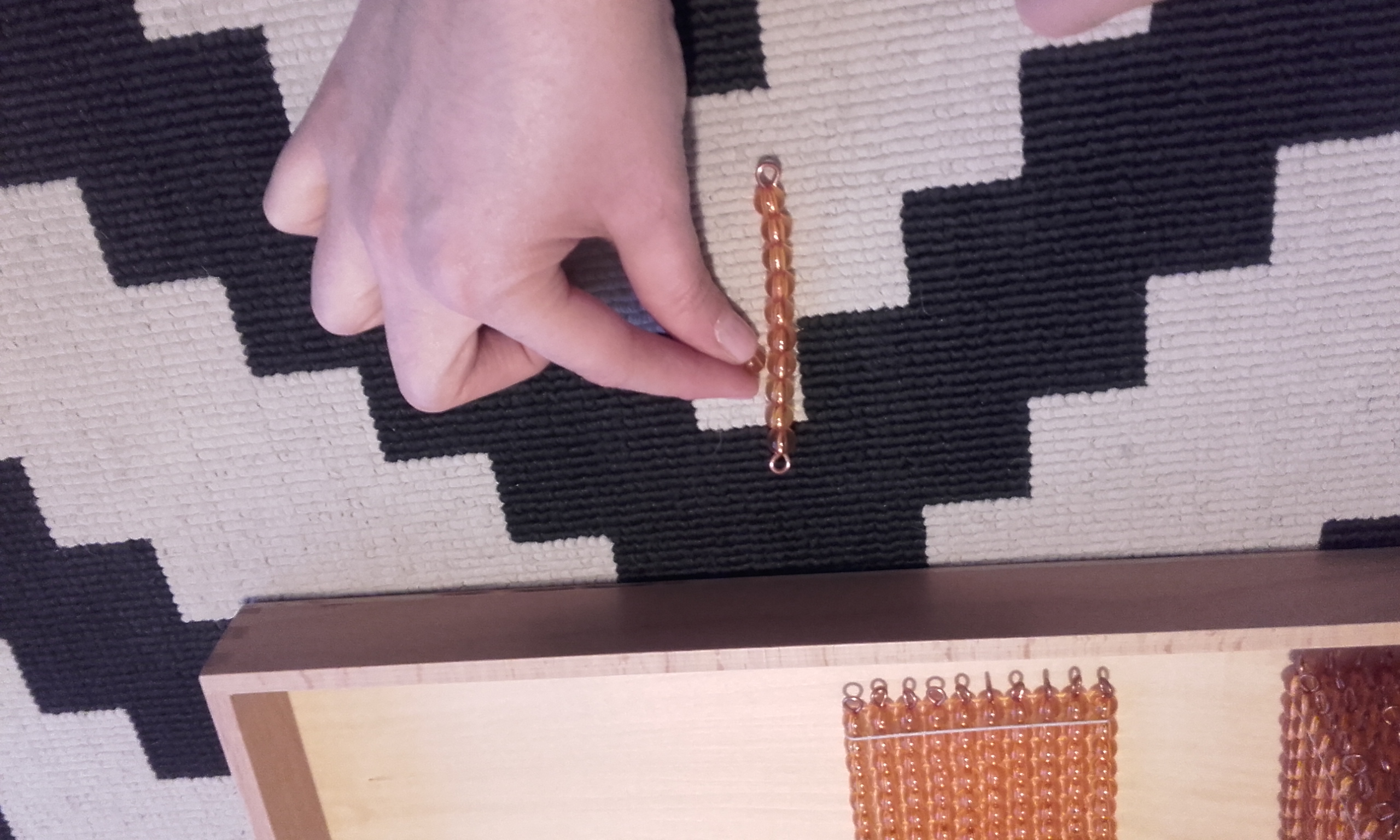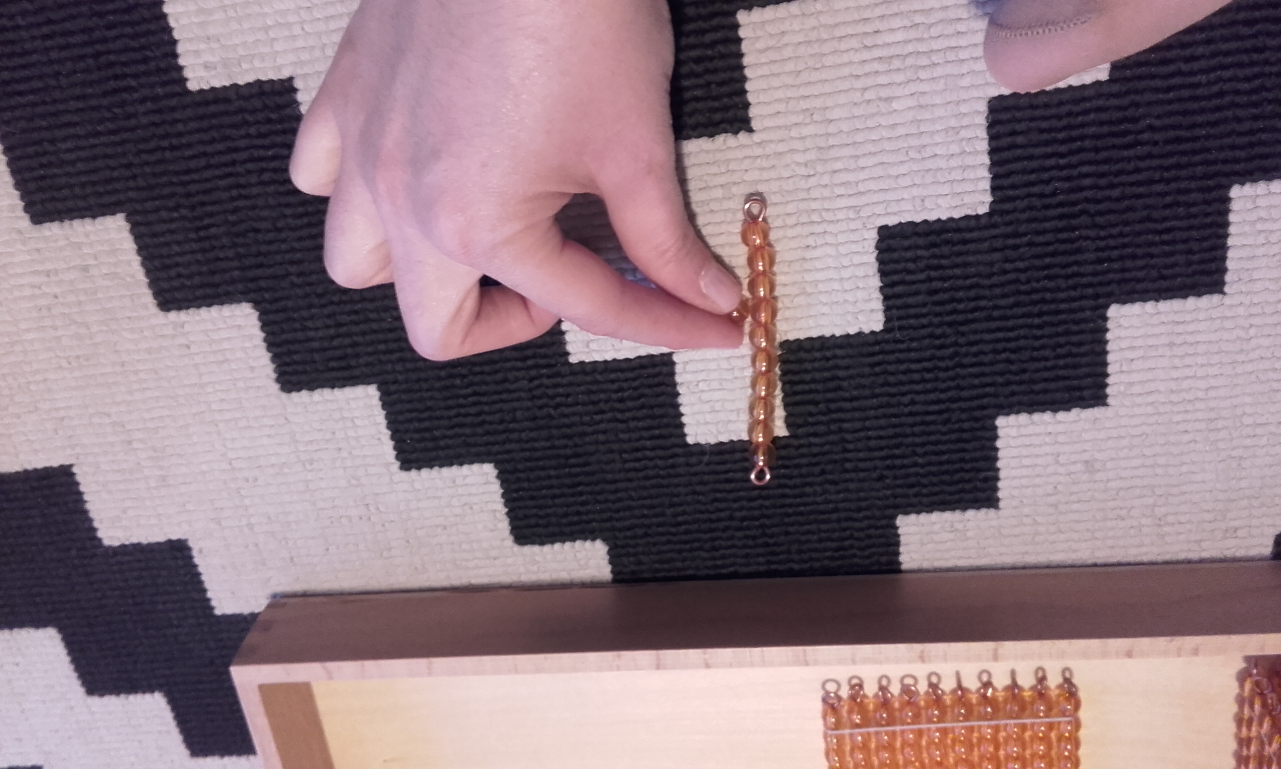 - Después, pusimos en la alfombra la unidad, decena, centena y el millar. Volví a repetir cómo se llamaba cada una y le pedía que señalase cada vez una y en orden (señala la unidad, señala la decena, señala la centena, señala el millar).