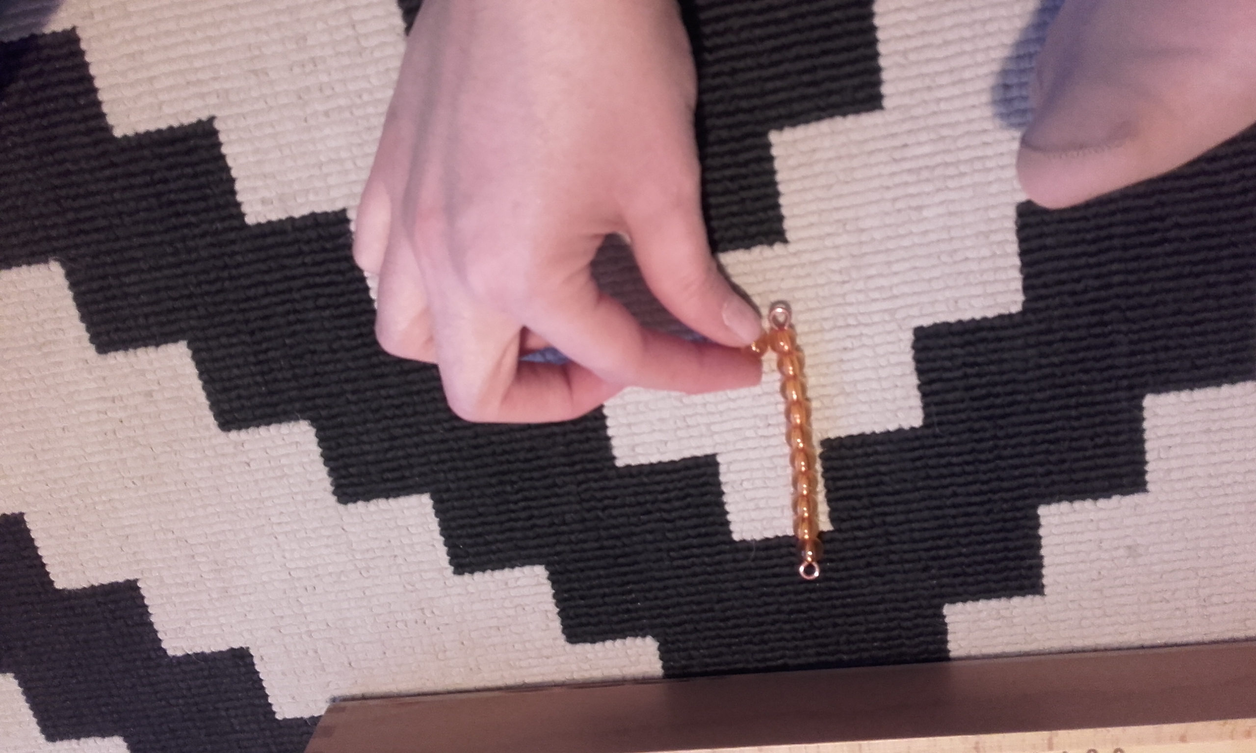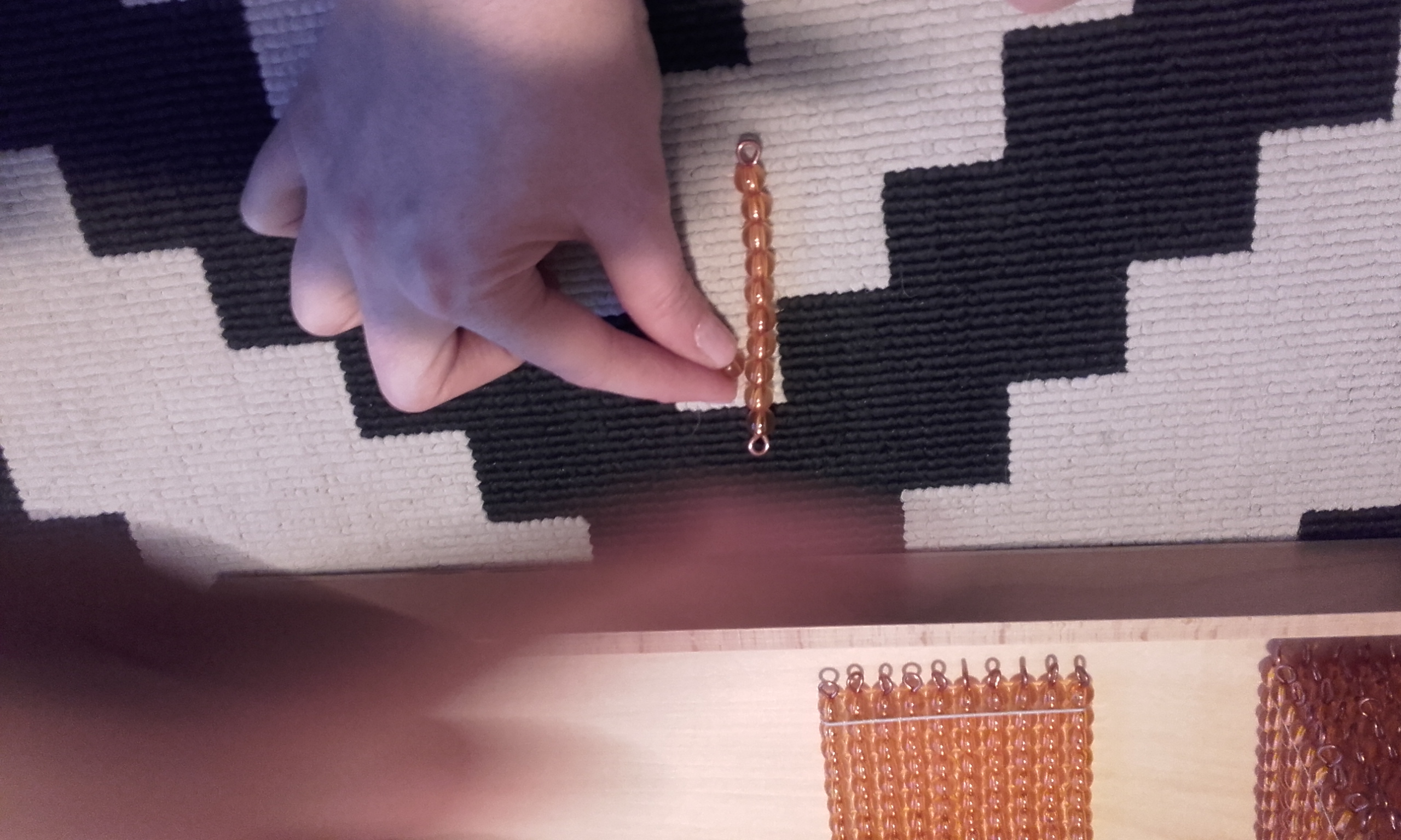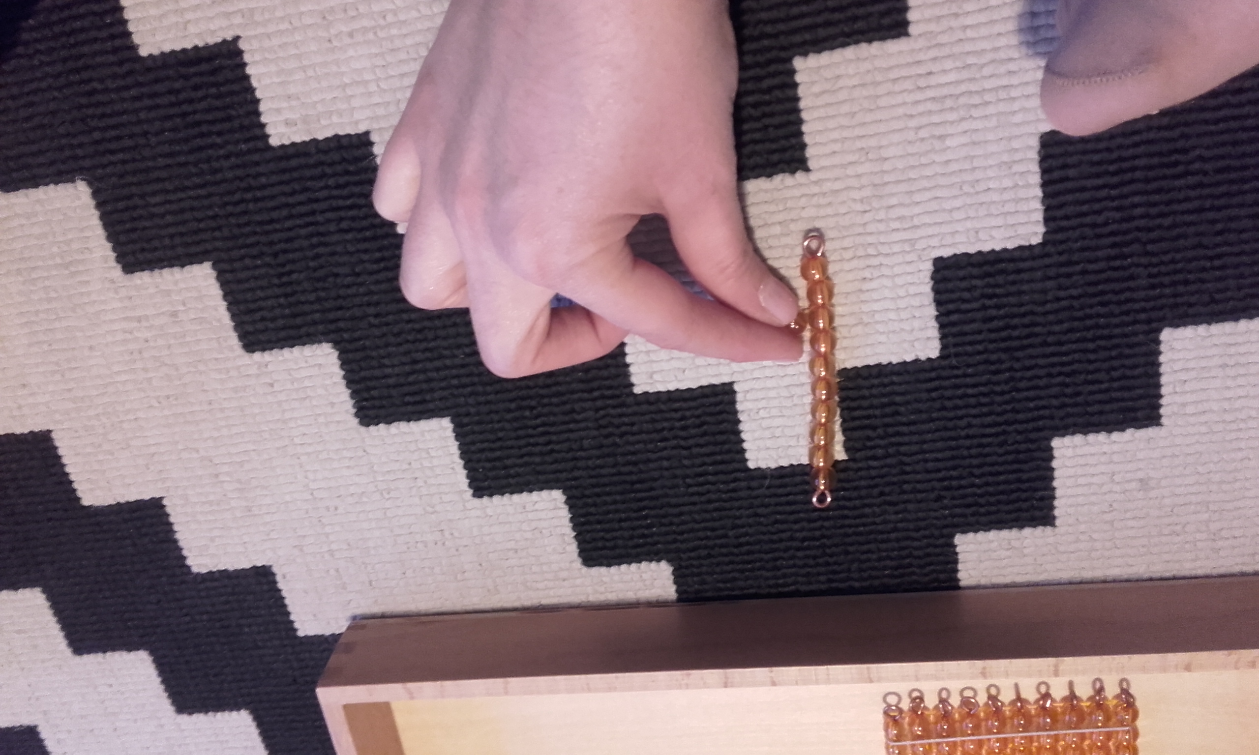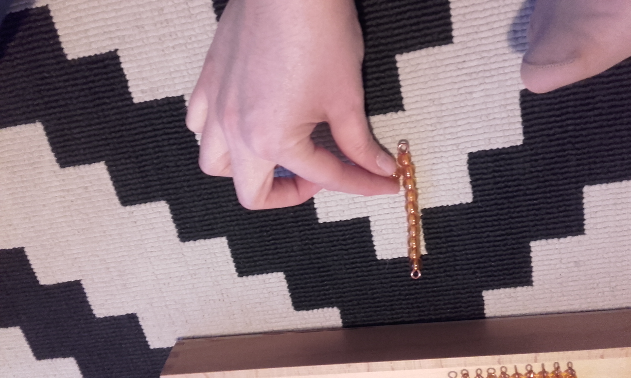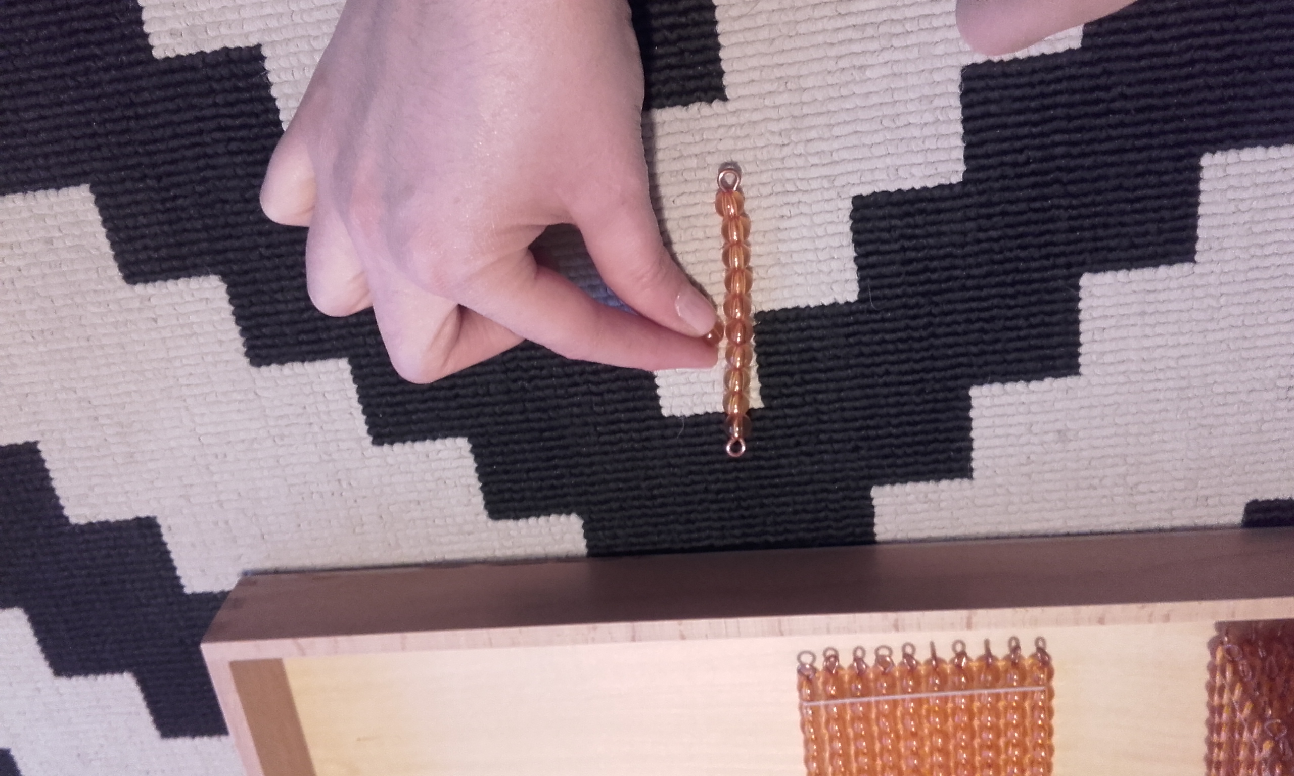 - Después, pusimos en la alfombra la unidad, decena, centena y el millar. Volví a repetir cómo se llamaba cada una y le pedía que señalase cada vez una y en orden (señala la unidad, señala la decena, señala la centena, señala el millar).