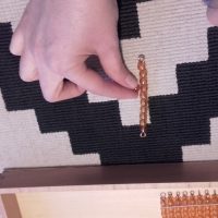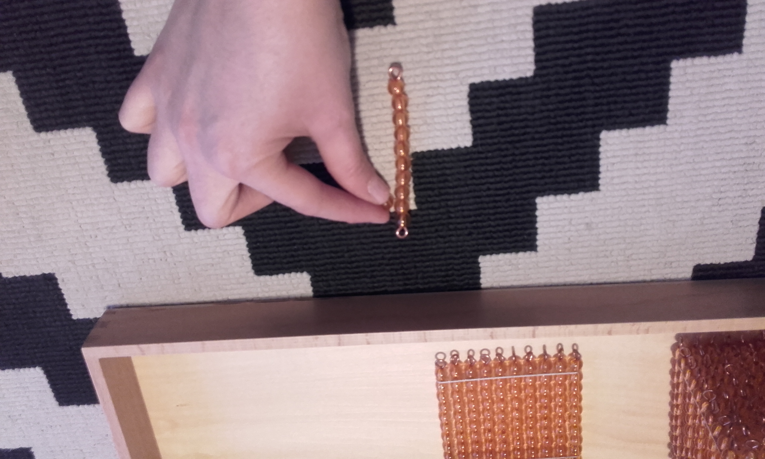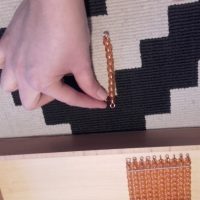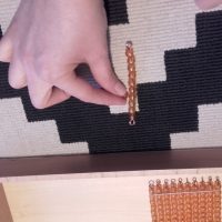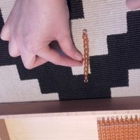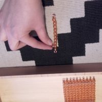 - Cogí la centena y dije «Esta es la centena y es un grupo de diez decenas, mira» y con una decena en la mano y la centena en la otra fuimos contando y vimos que la decena se repite 10 veces en la centena. Se la di, la tocó, me la devolvió y la coloqué en el sitio.