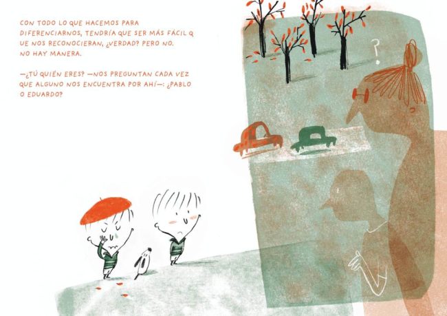 Yo soy el otro es un álbum ilustrado entrañable que nos abre los ojos ante la realidad que viven todos los hermanos gemelos. En ocasiones, llegan a perder hasta su nombre al ser confundidos con su hermano.